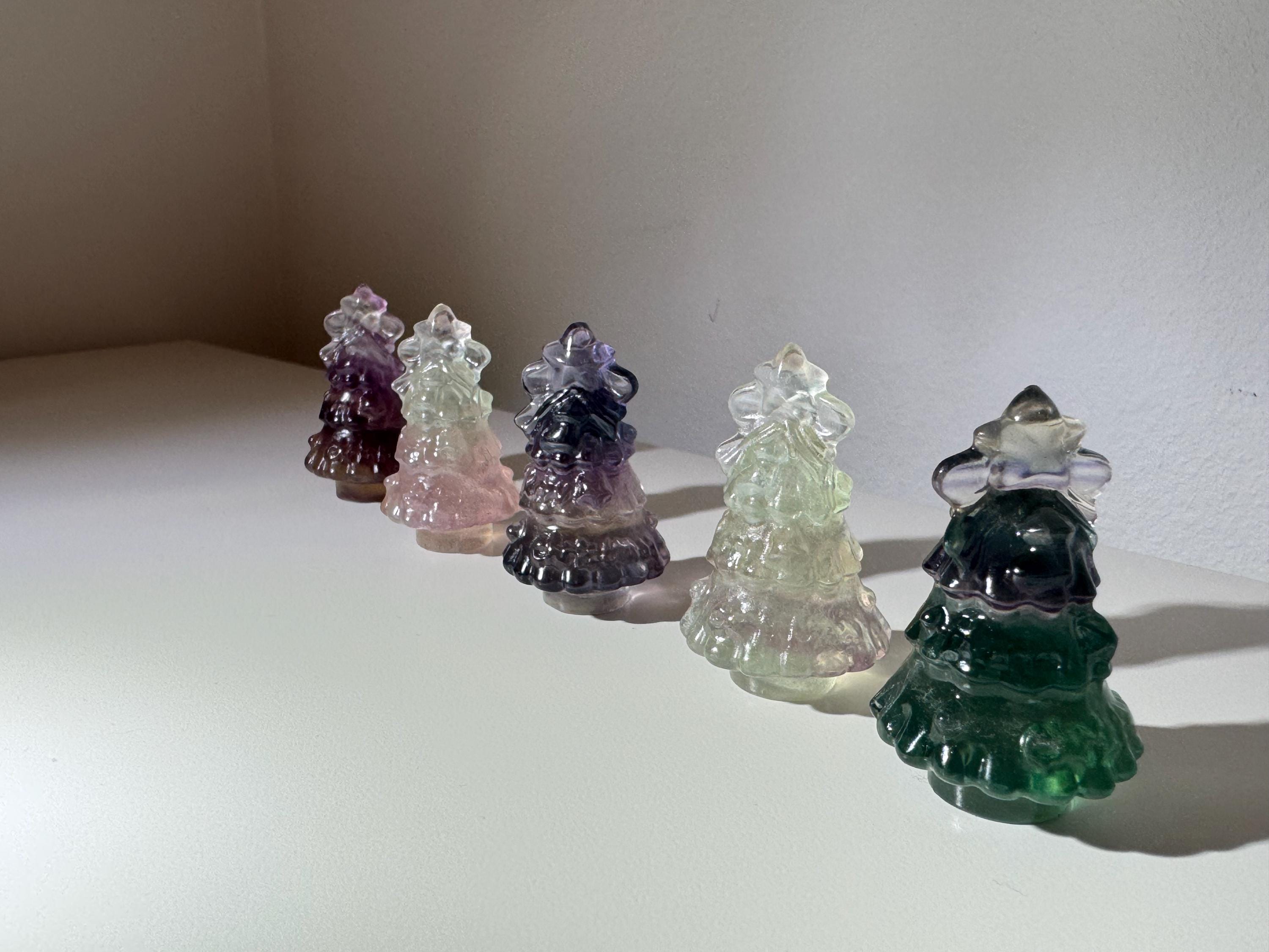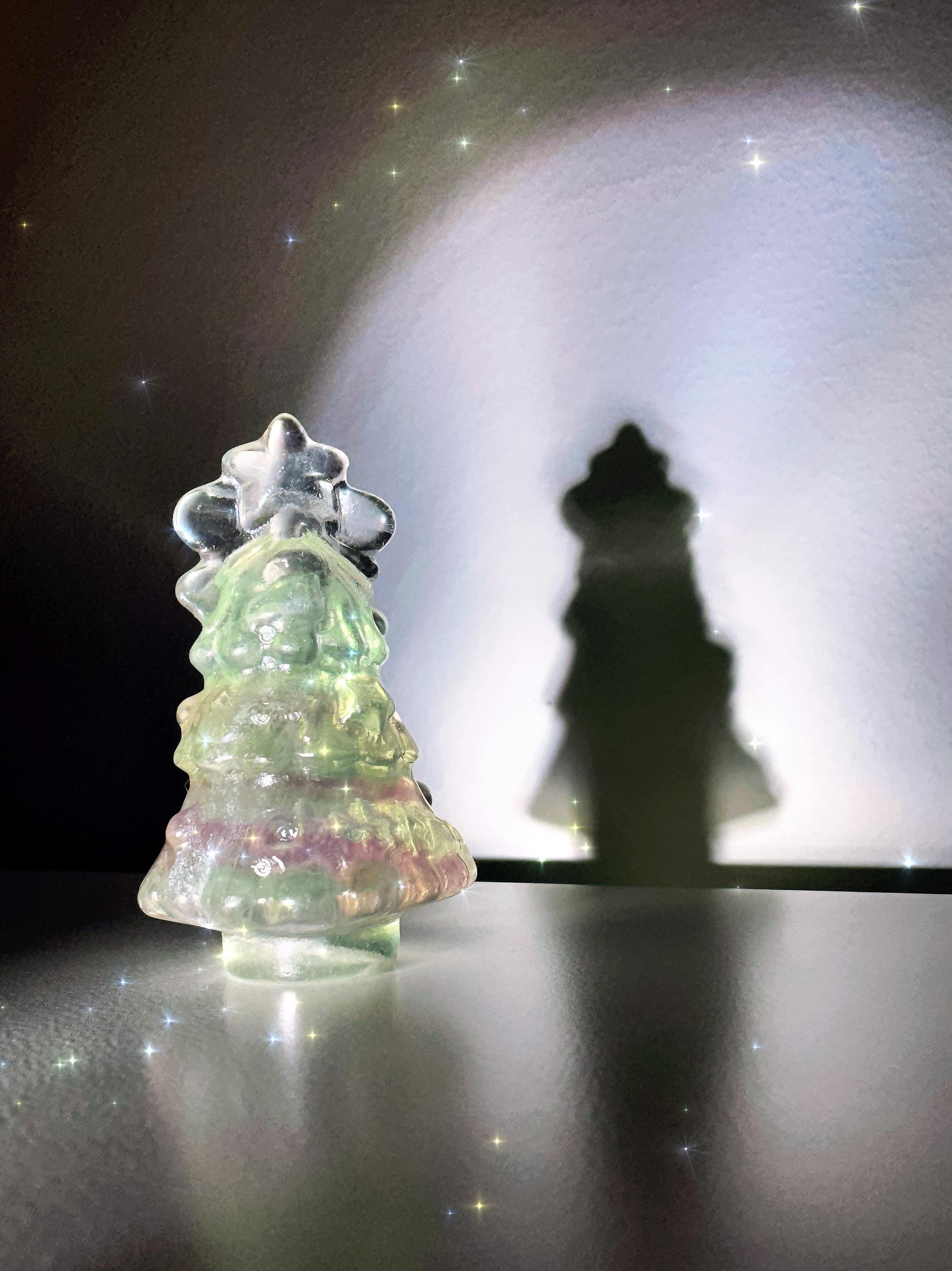 • Enlarge video Rainbow Fluorite Christmas Tree, Small Ornament Decoration, Spiritual Holiday Decor for Desk and Home, Lovely Unique Gift for Family Members