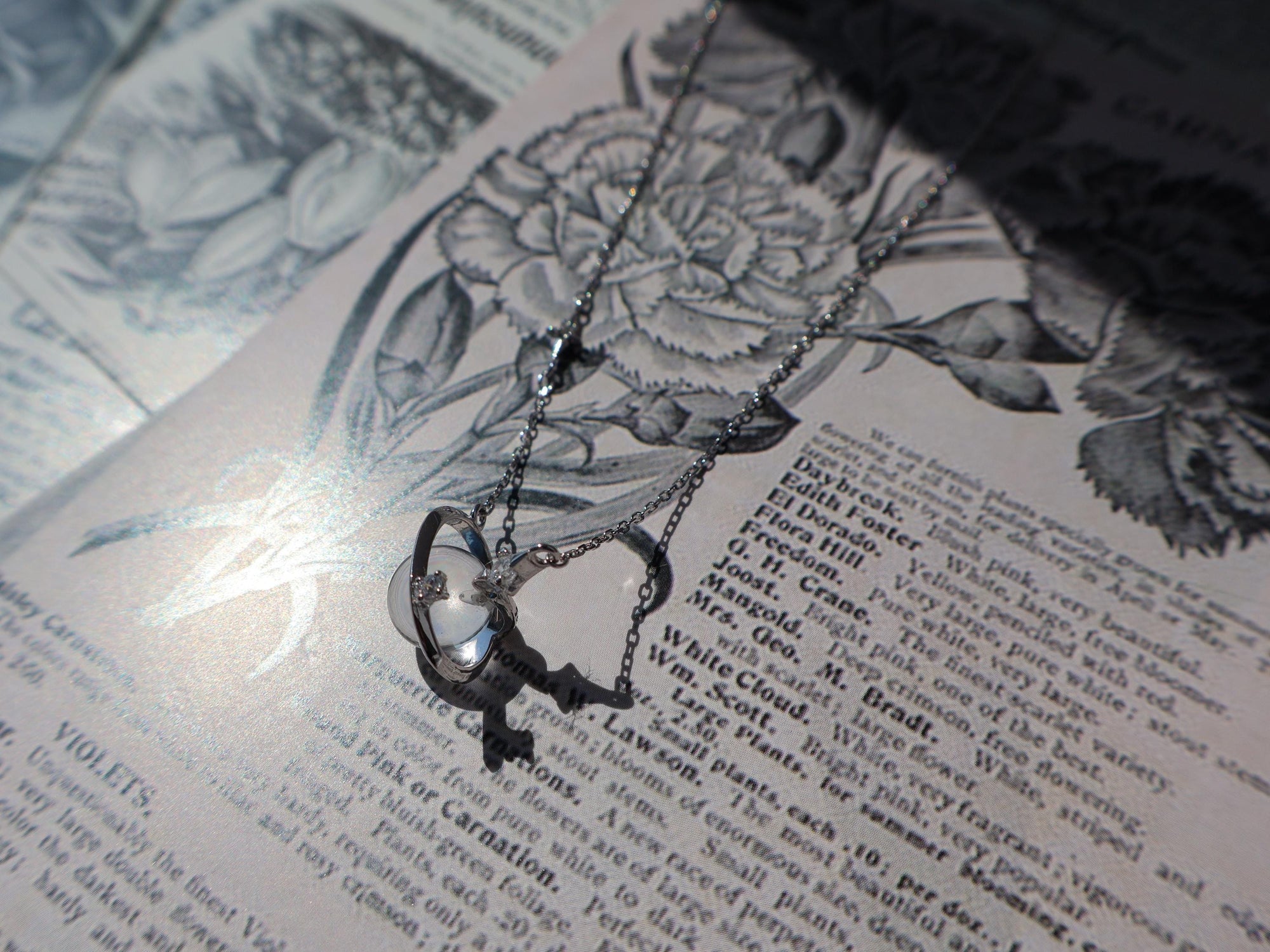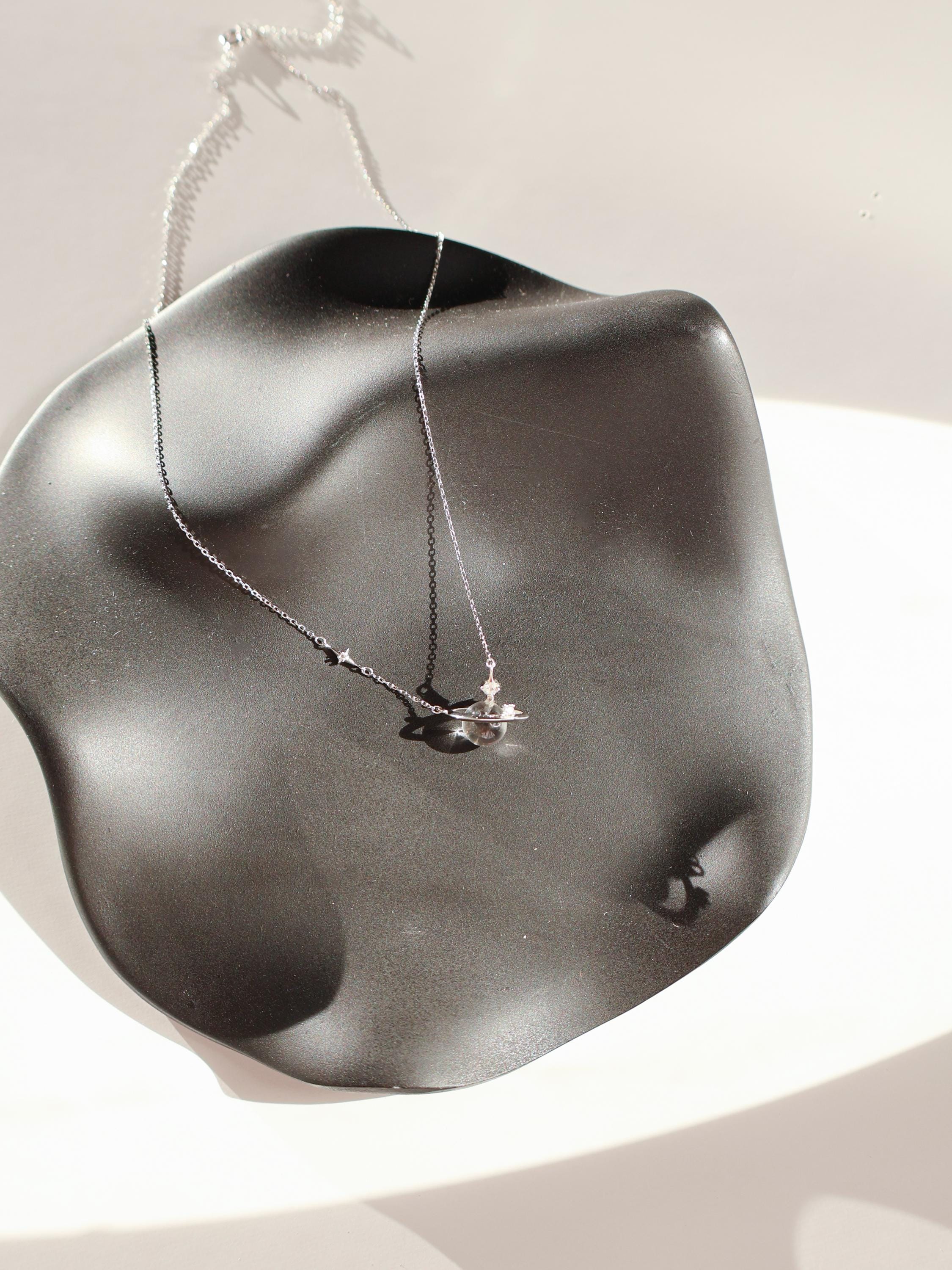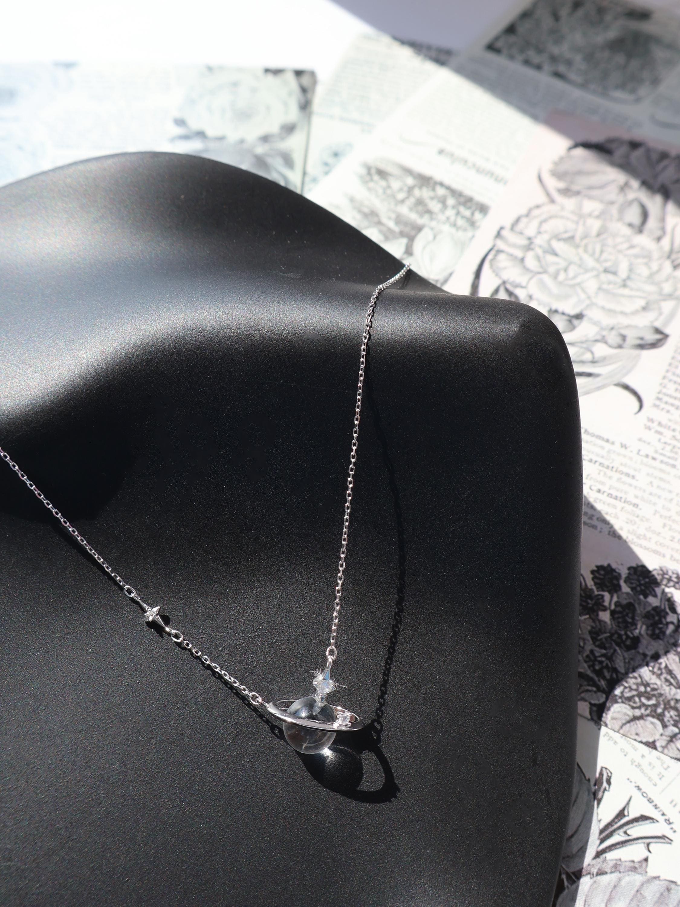 Carry a piece of the universe with you in this stunning planet necklace, featuring a polished crystal sphere encircled by a sterling silver Saturn-style ring. A delicate star accent on the chain completes the celestial design, making it a timeless accessory for dreamers, stargazers, and lovers of astrology.