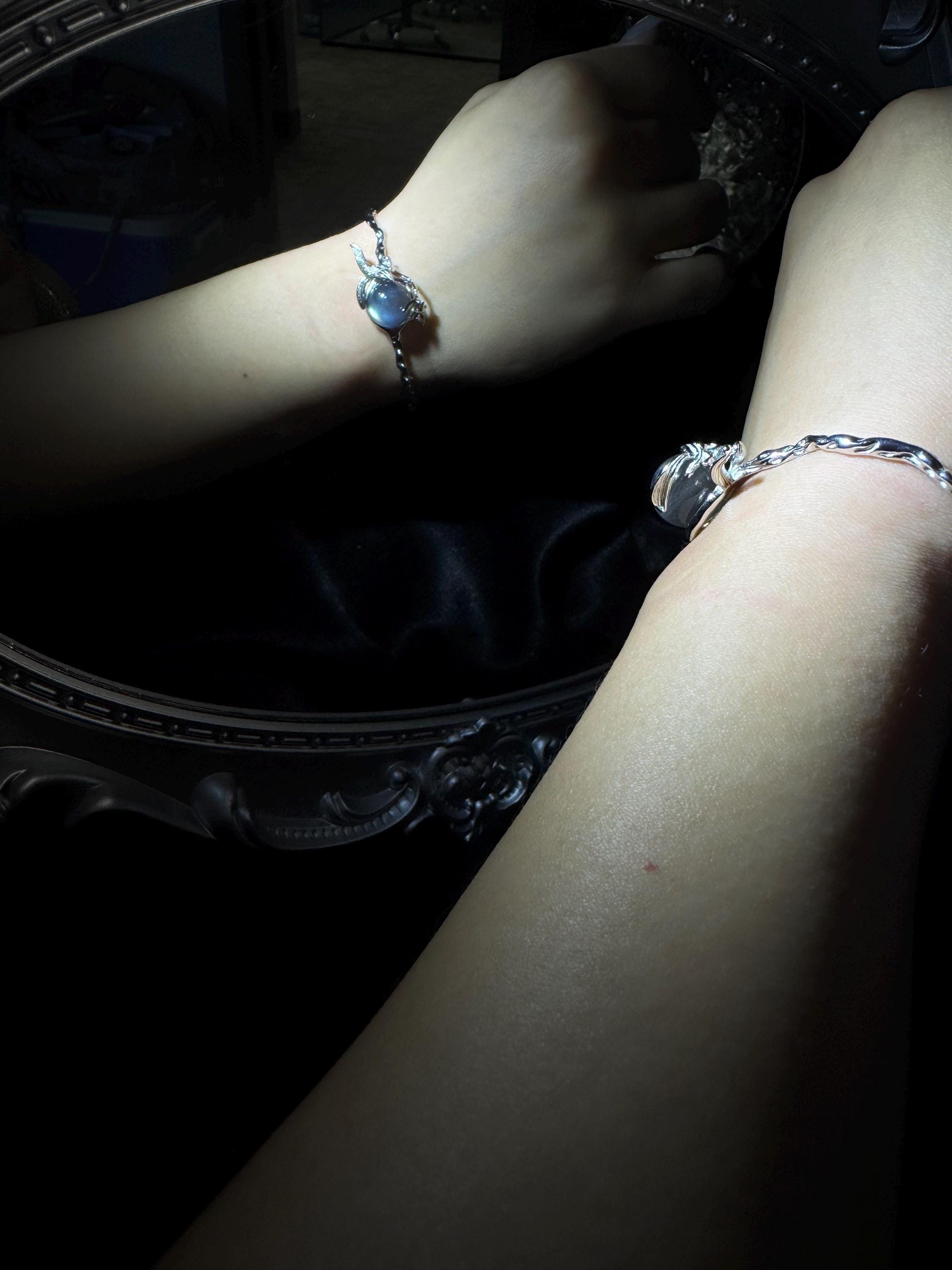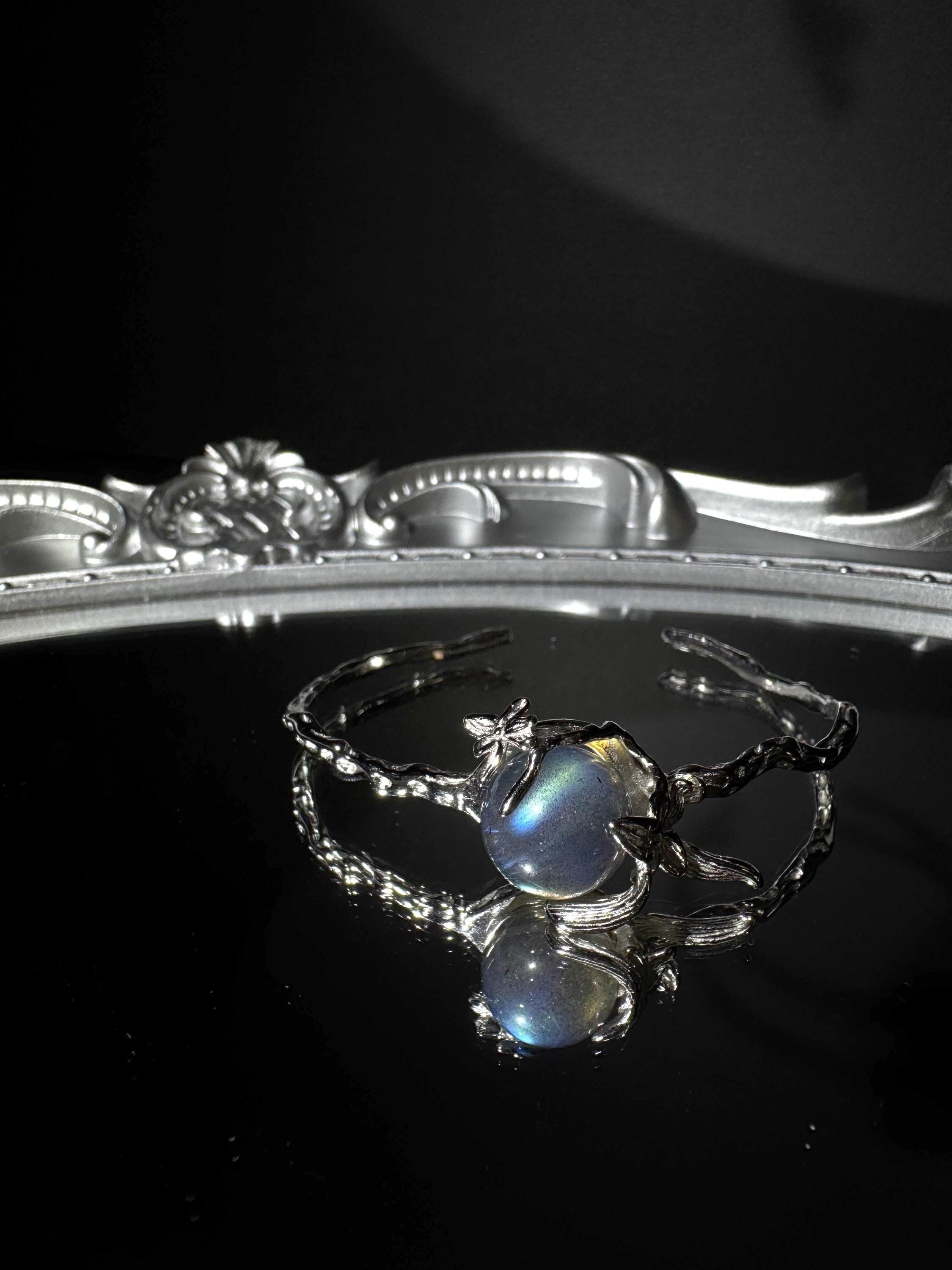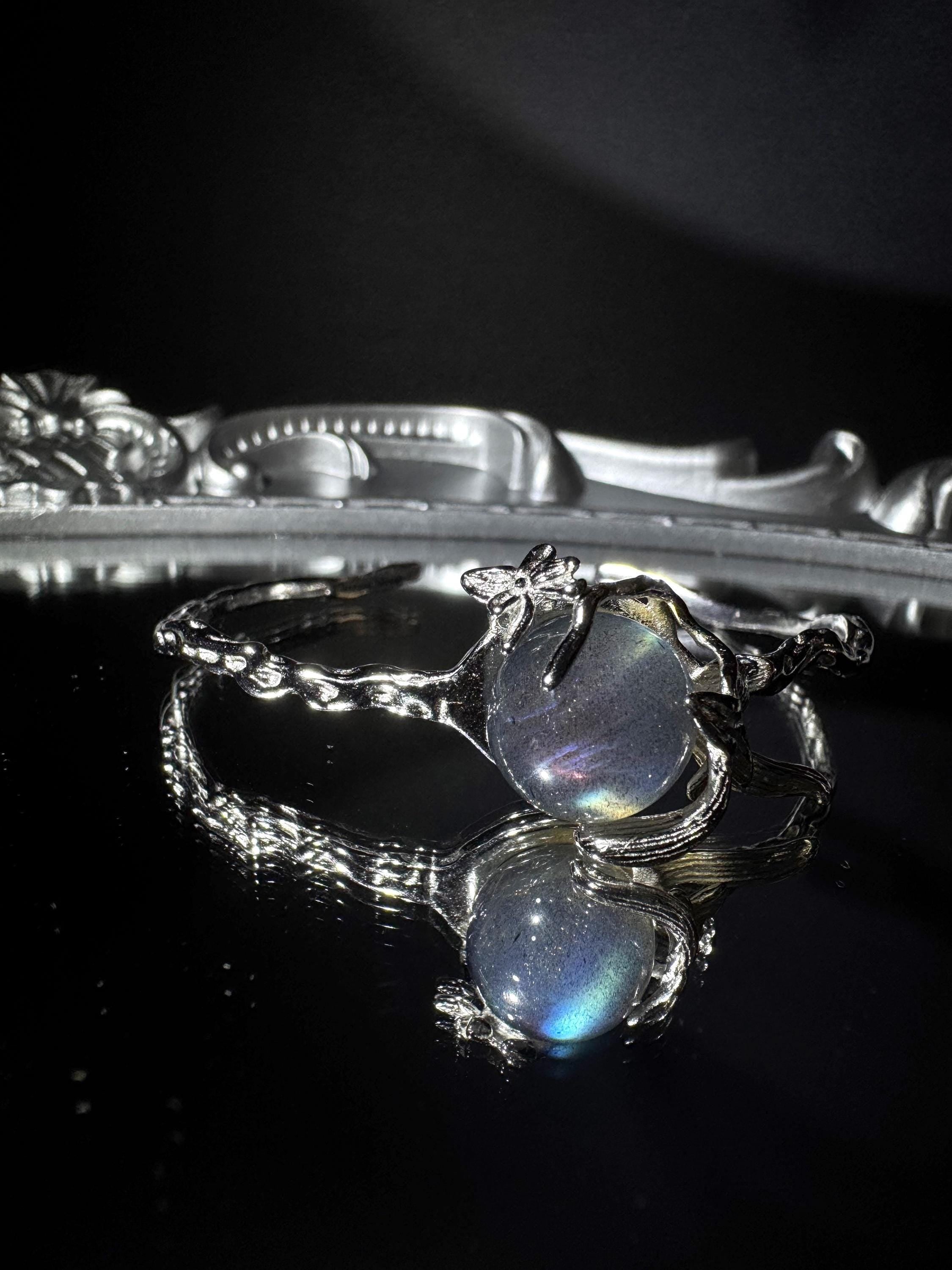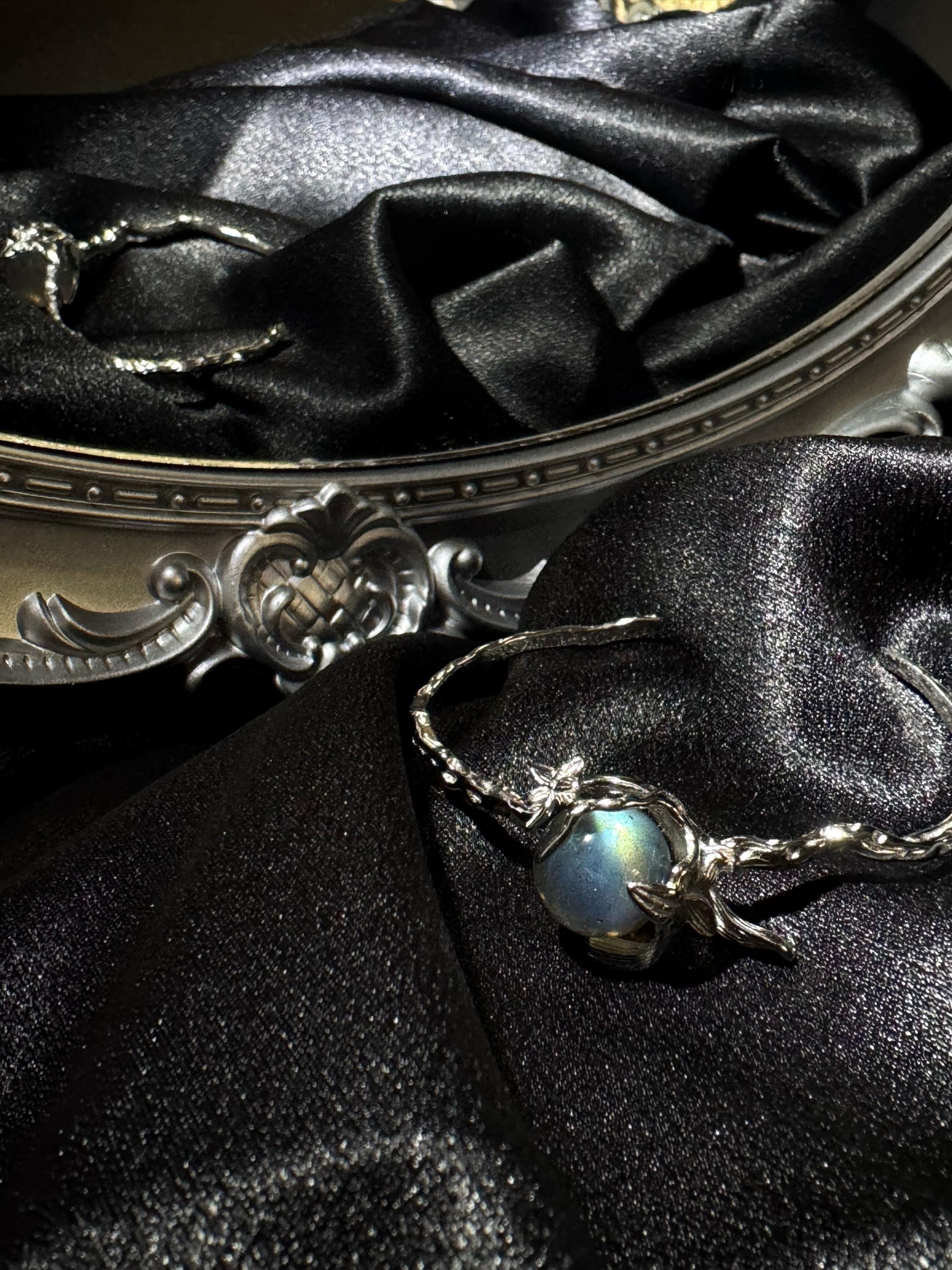Discover transformation, calm, and hidden magic with our handcrafted 925 sterling silver spinner cuff. A natural labradorite orb glows at the center of a sculpted botanical band — a design that is both elegant and meaningful, perfect for daily wear.