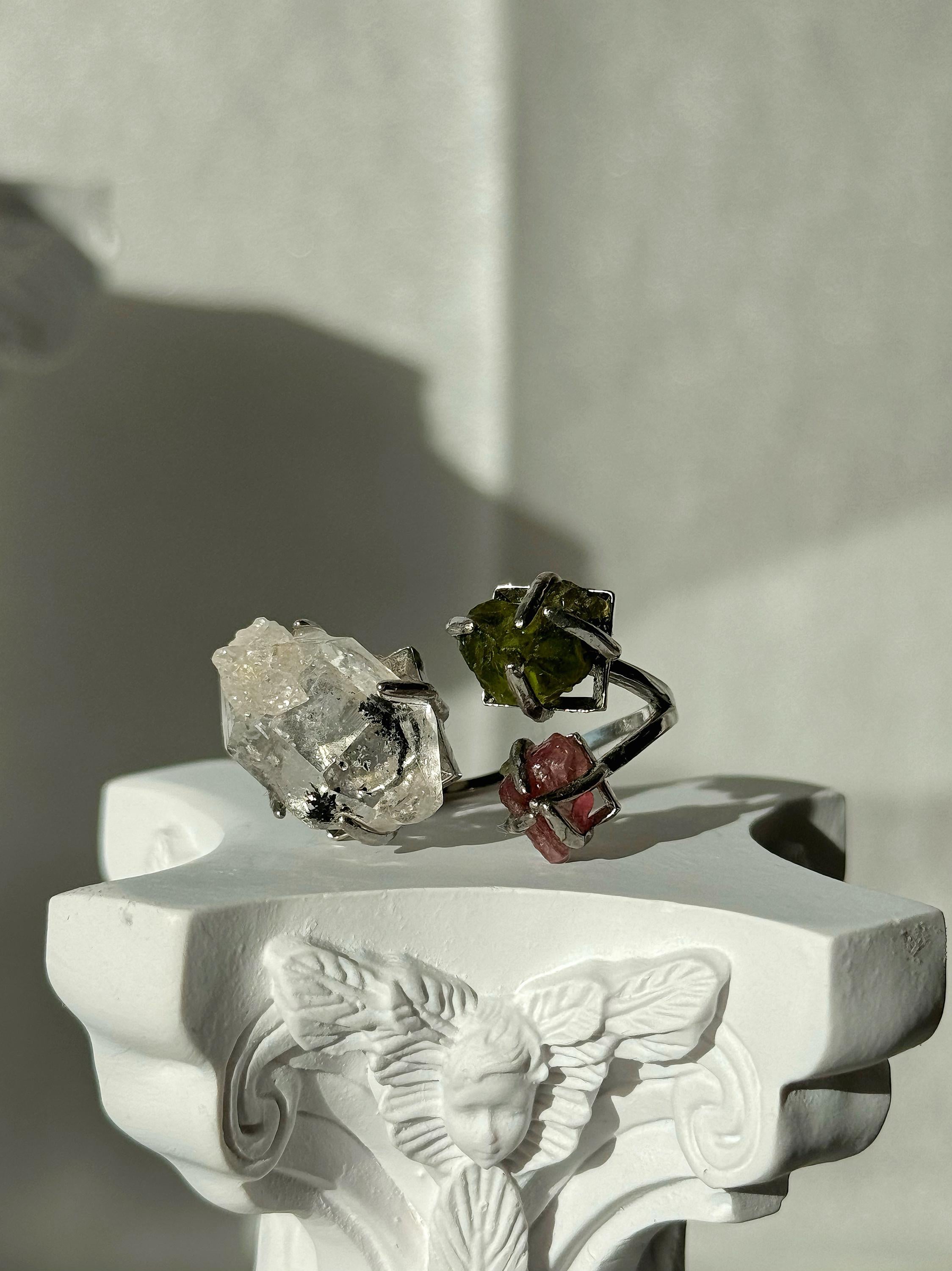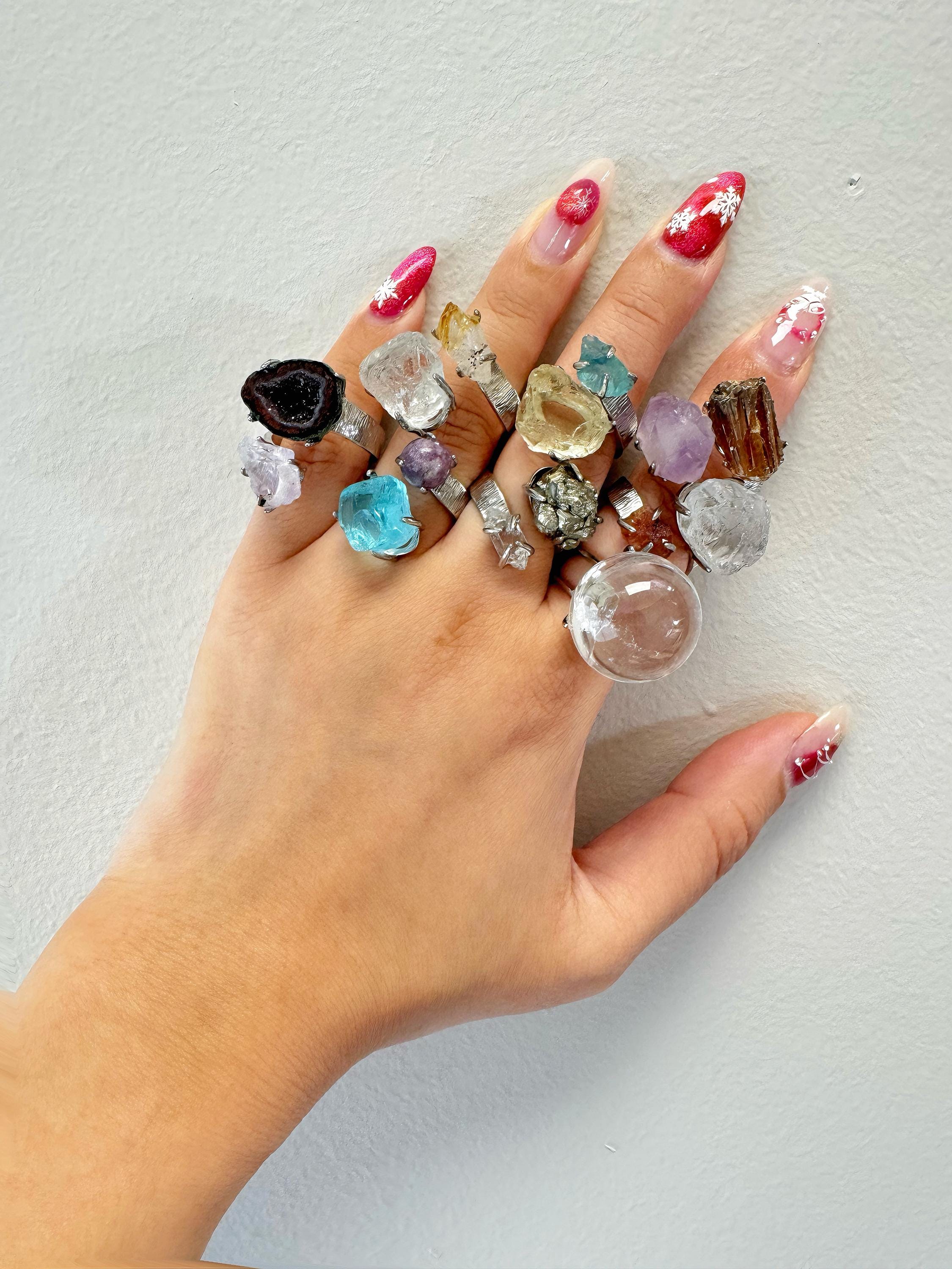 Embrace the magic of nature with our one-of-a-kind, handmade multi-crystal rings.