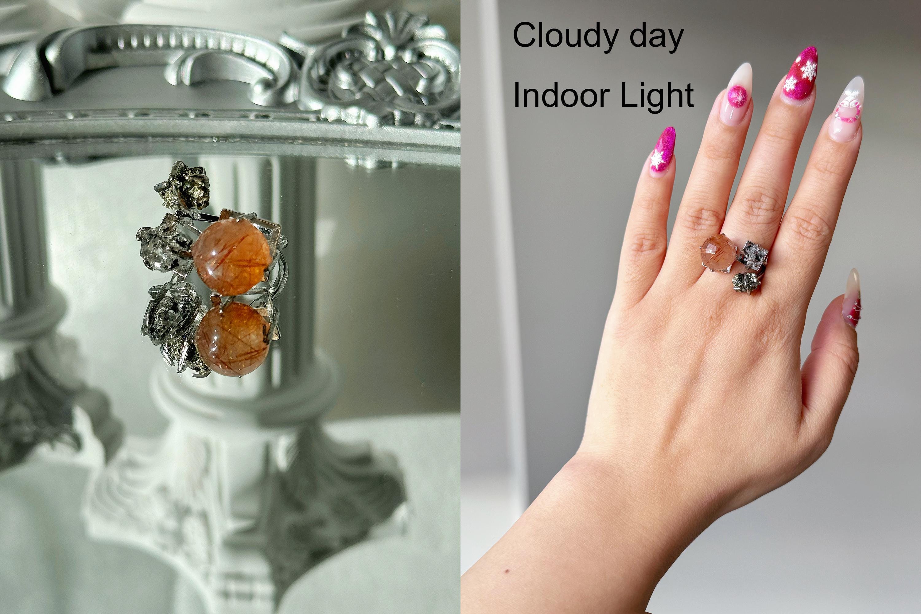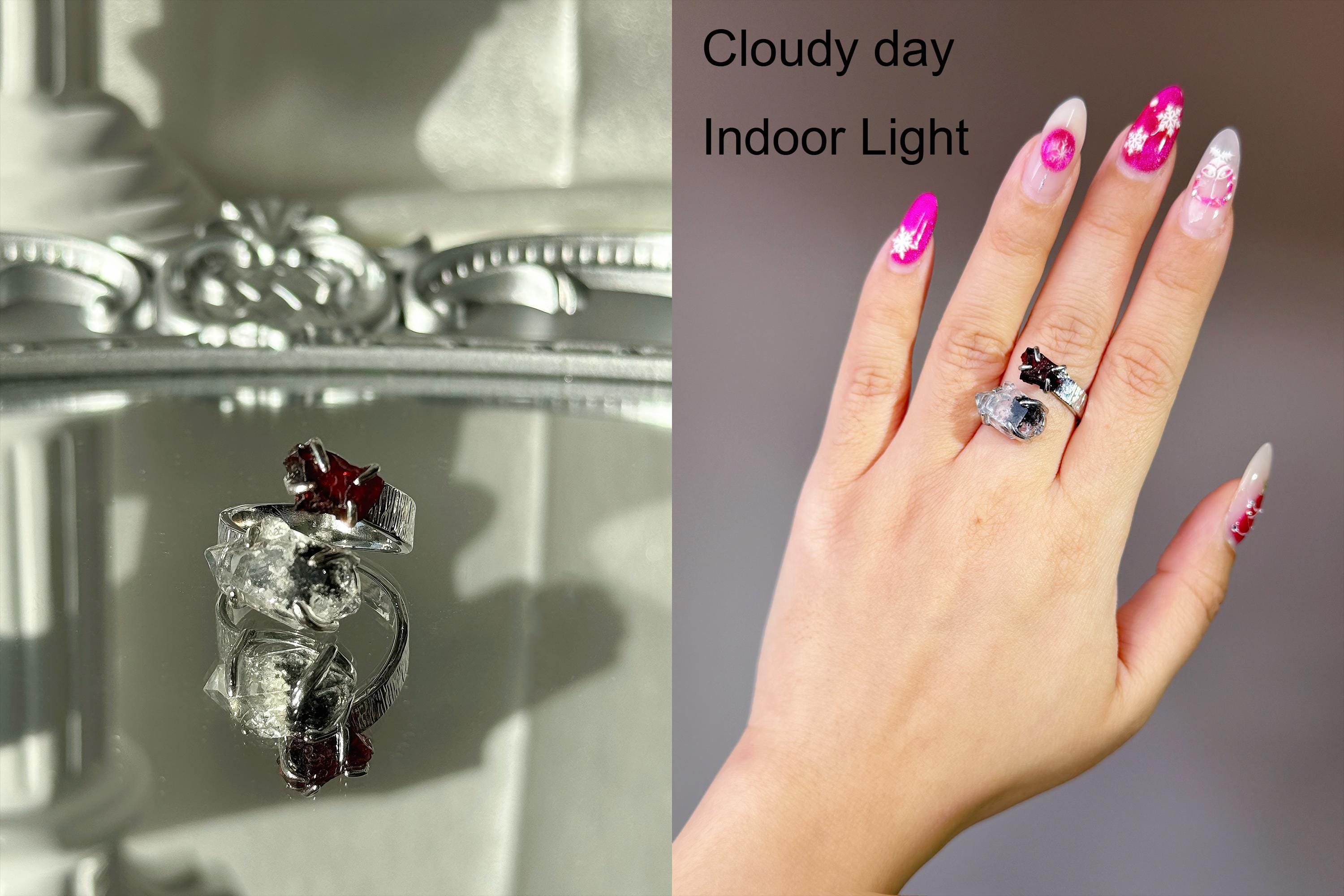- Unique Raw Gemstones – Every ring carries a one-of-a-kind combination of crystals such as amethyst, rose quartz, fluorite, citrine, garnet, aquamarine, and more