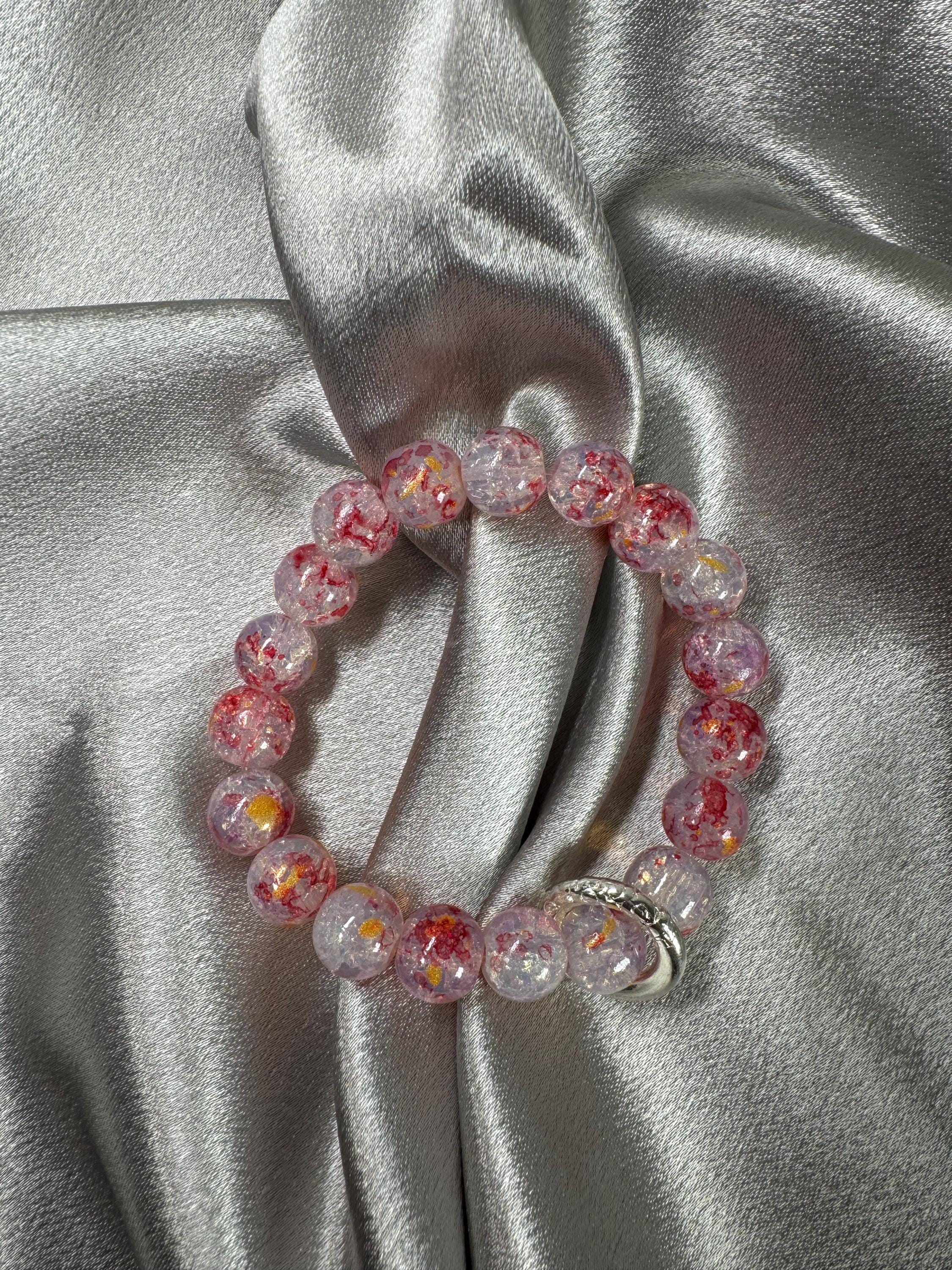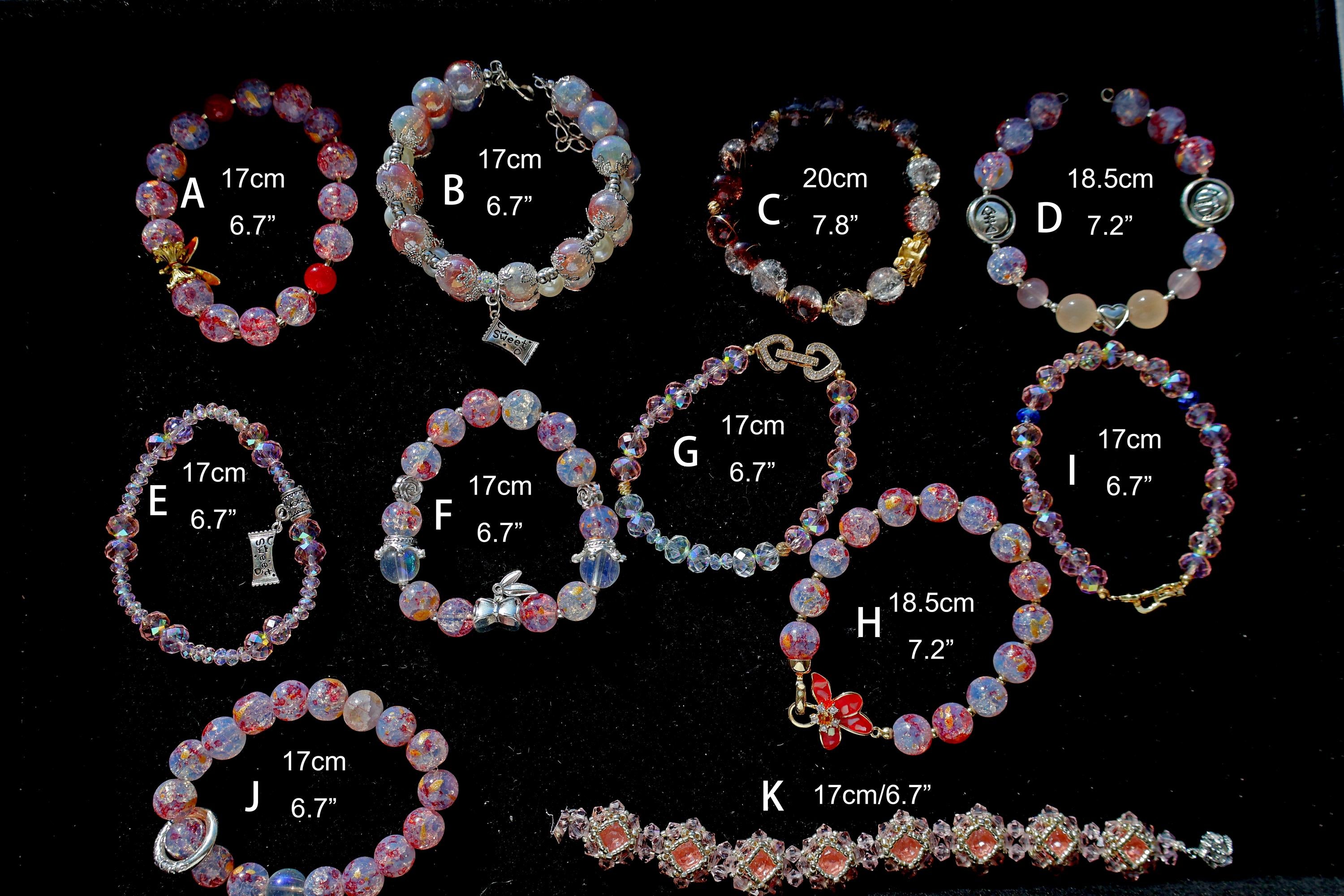 🌟Bracelet J is like a tiny celebration on your wrist, with pink-speckled beads that glisten like sprinkled fairy dust! The silver accent adds a touch of twinkle, making it feel lively and joyful—a little treasure that brings sparkle and cheer wherever you go! 🎀✨🌸
