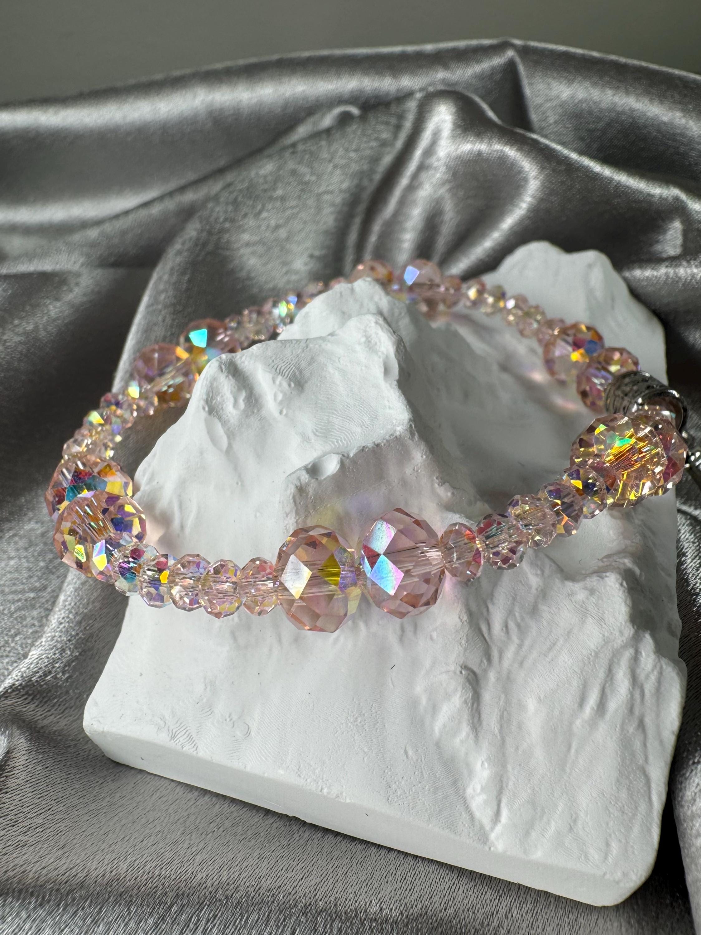 🌟Bracelet E is made up of faceted beads in various sizes, creating a unique, eye-catching look. At first glance, it appears pink, but under the light, it shines with a magical rainbow glow. Perfect for those with a bold personality, this bracelet is sure to leave a lasting impression! 🌈✨💖