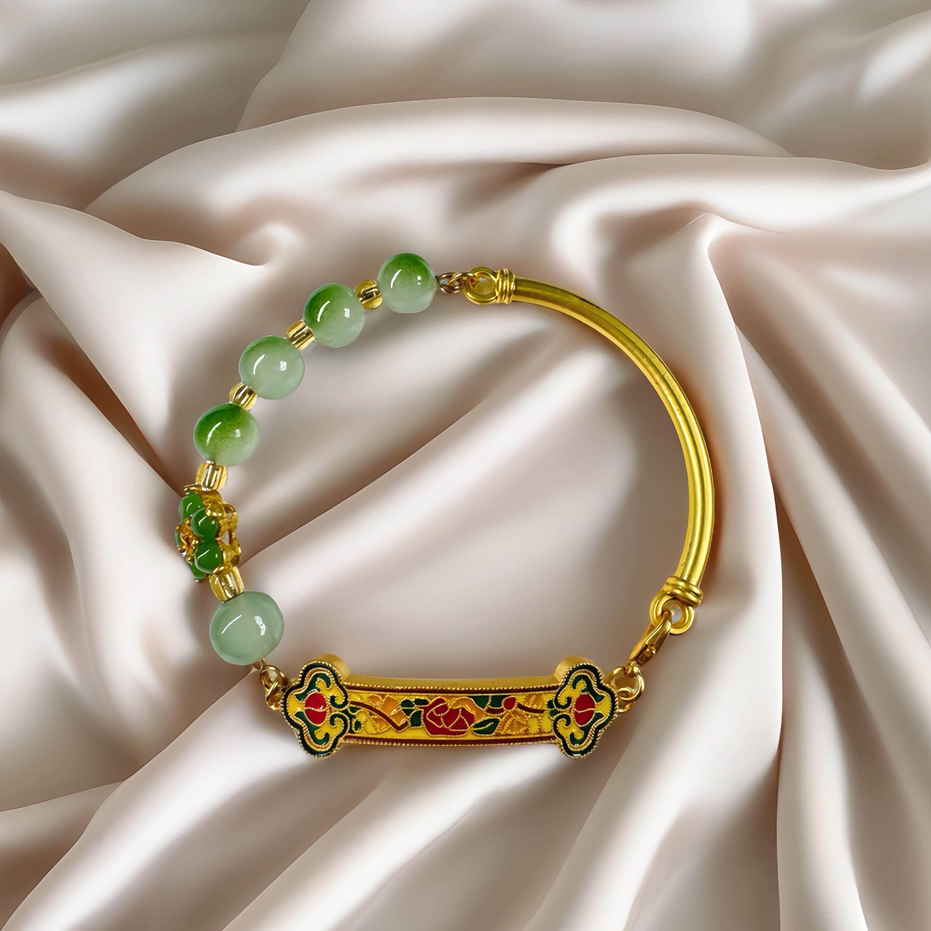 🌟Bracelet A features translucent green beads that mimic the texture of jade, giving it a timeless, elegant feel 💚✨. To add a unique touch, we’ve included a cloisonné-style enamel charm as a centerpiece. Perfect for vintage jewelry lovers or anyone who appreciates Chinese culture, this bracelet is a stylish way to showcase your love for tradition with a modern twist! 🌿🎨