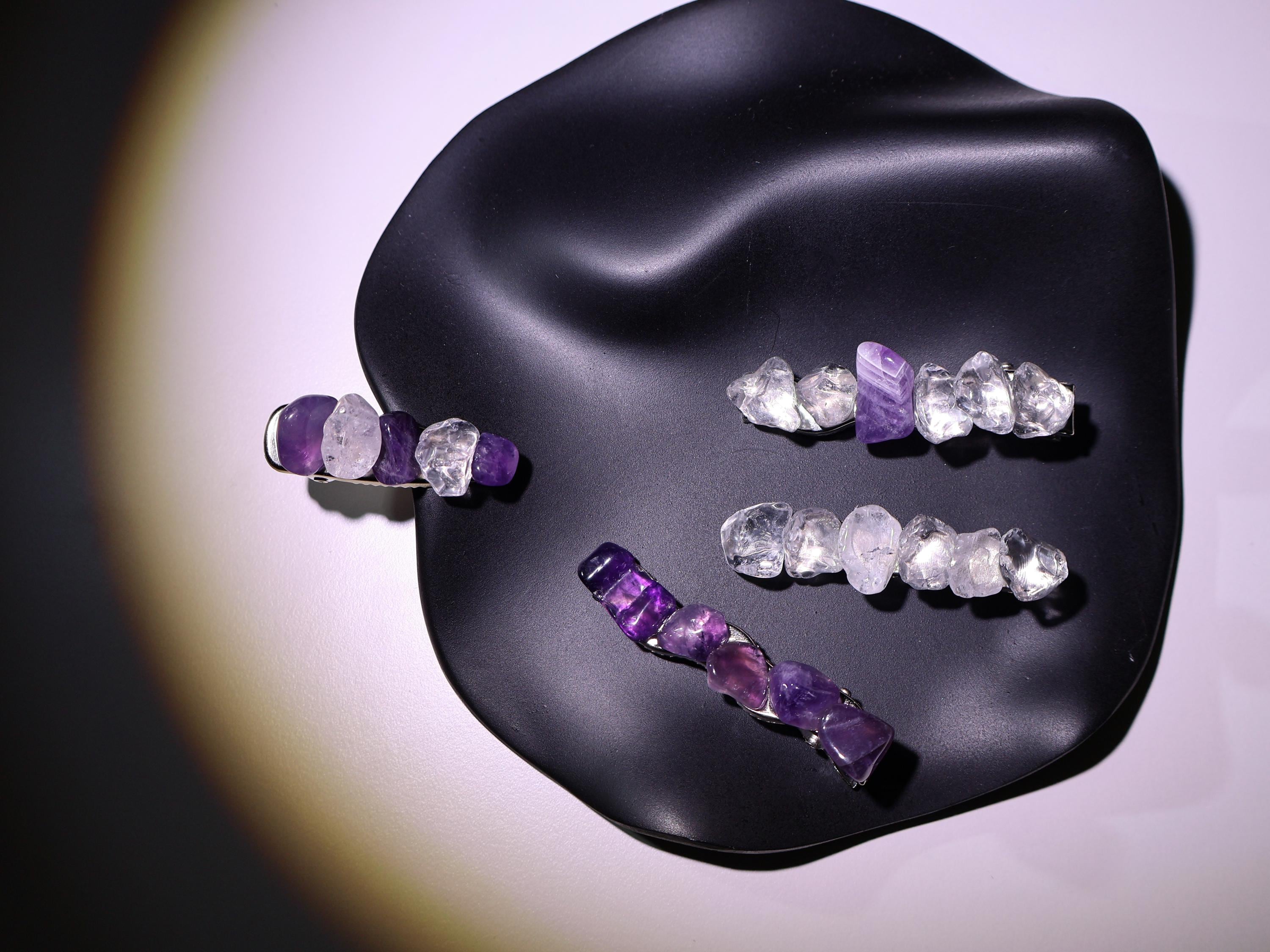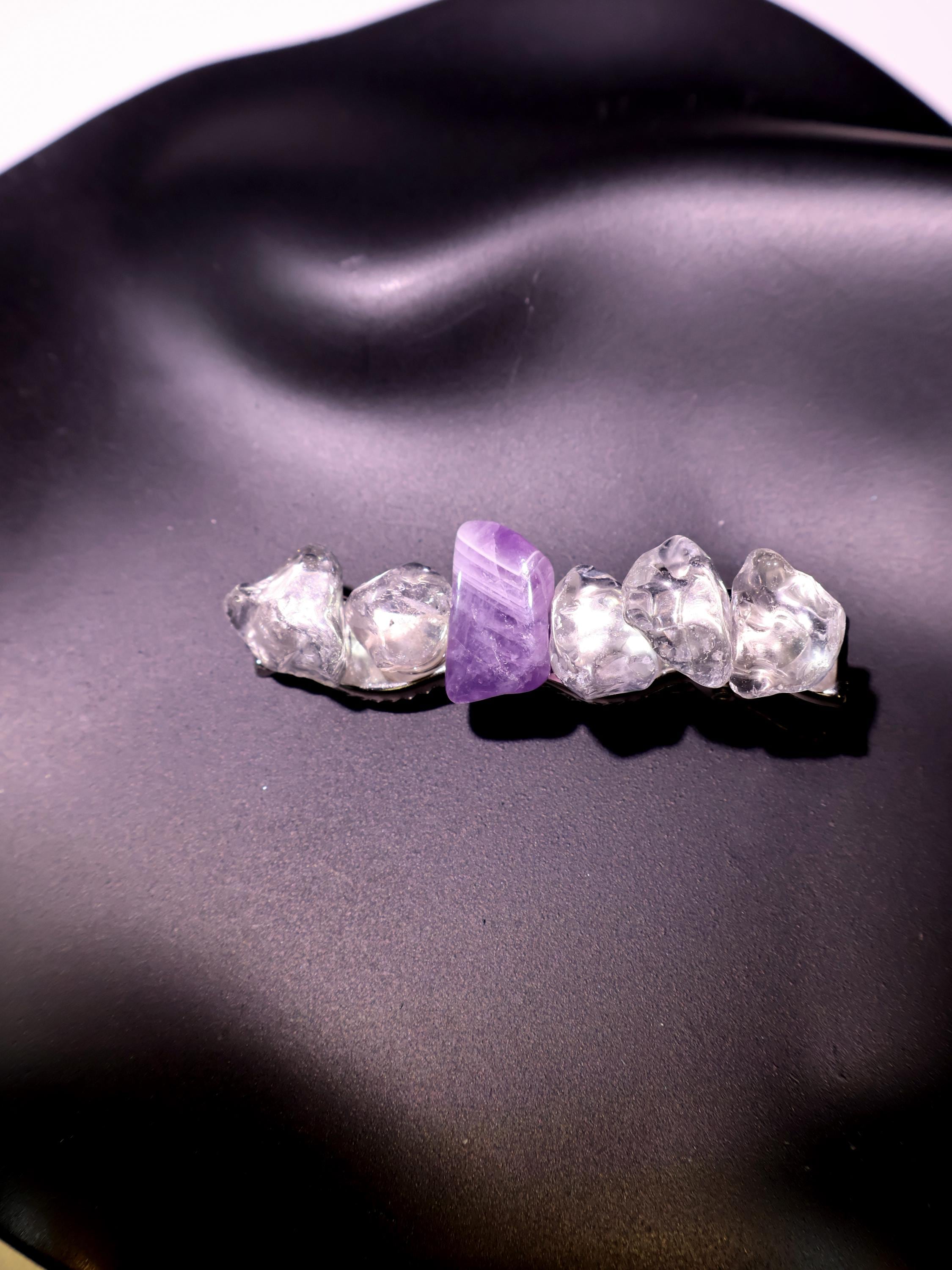 Clear Quartz/Amethyst Hair Clip, Gemstone Hair Accessory for Healing Energy, Third Eye and Crown Chakra Jewelry, Spiritual Gift