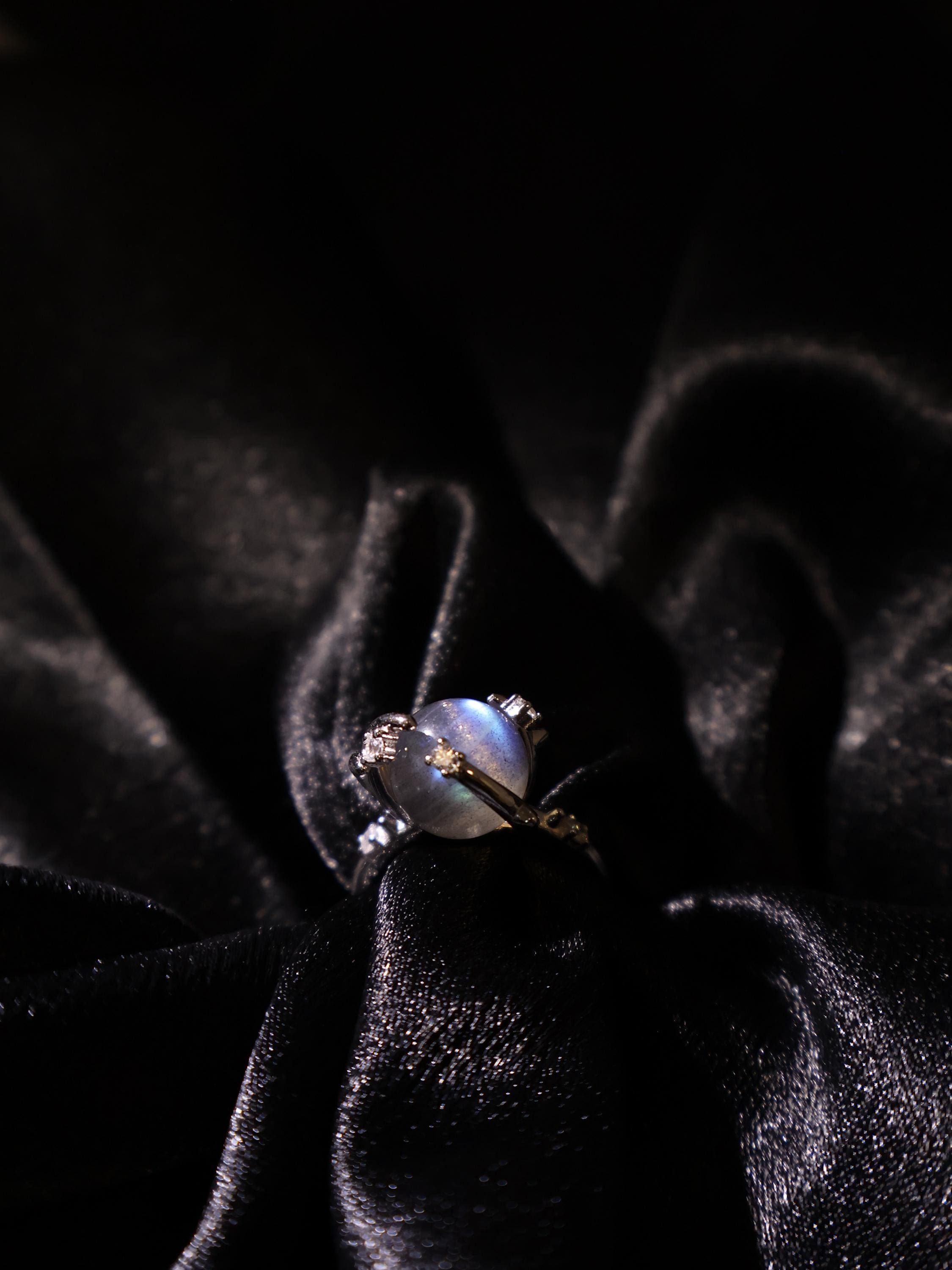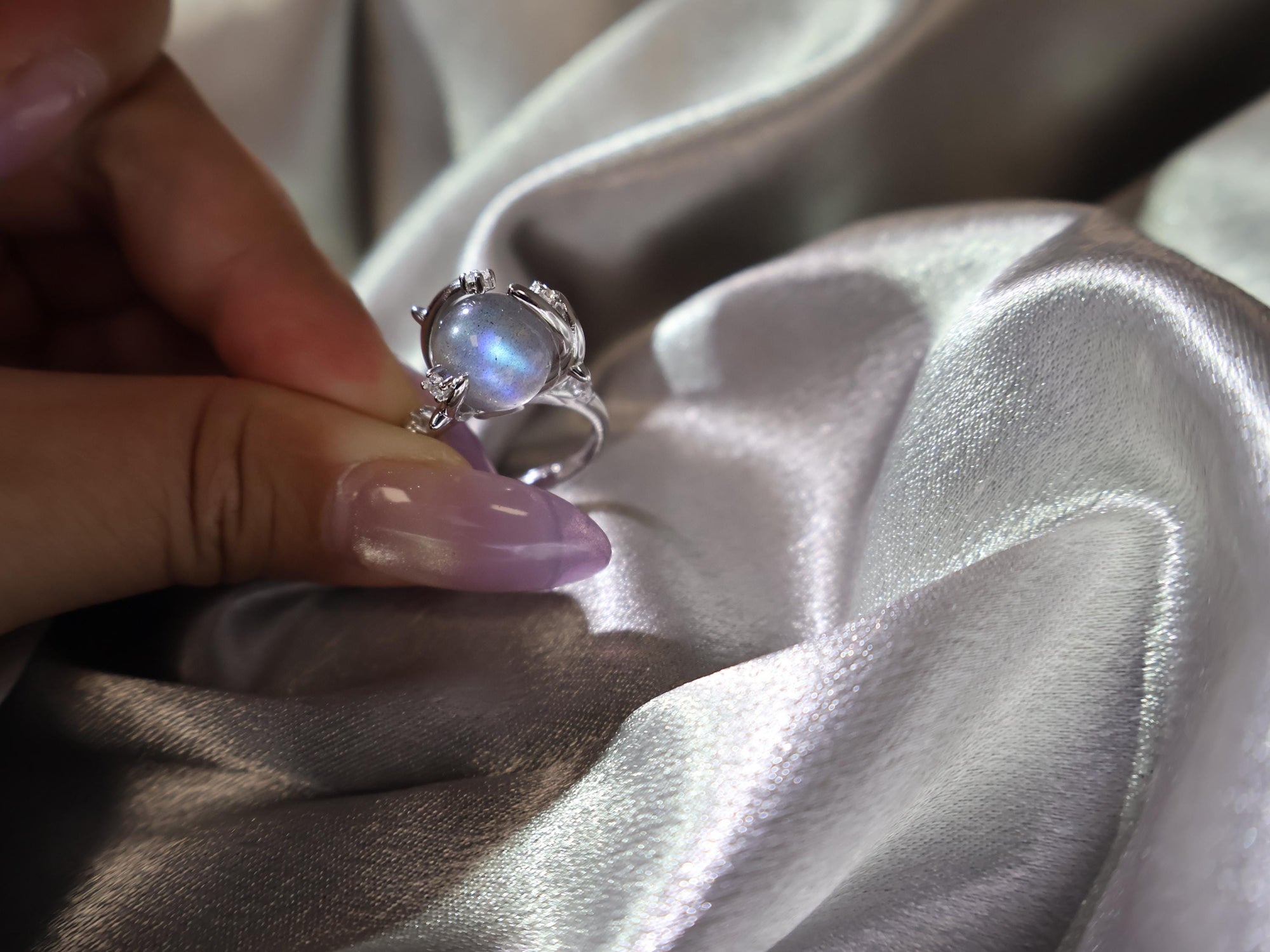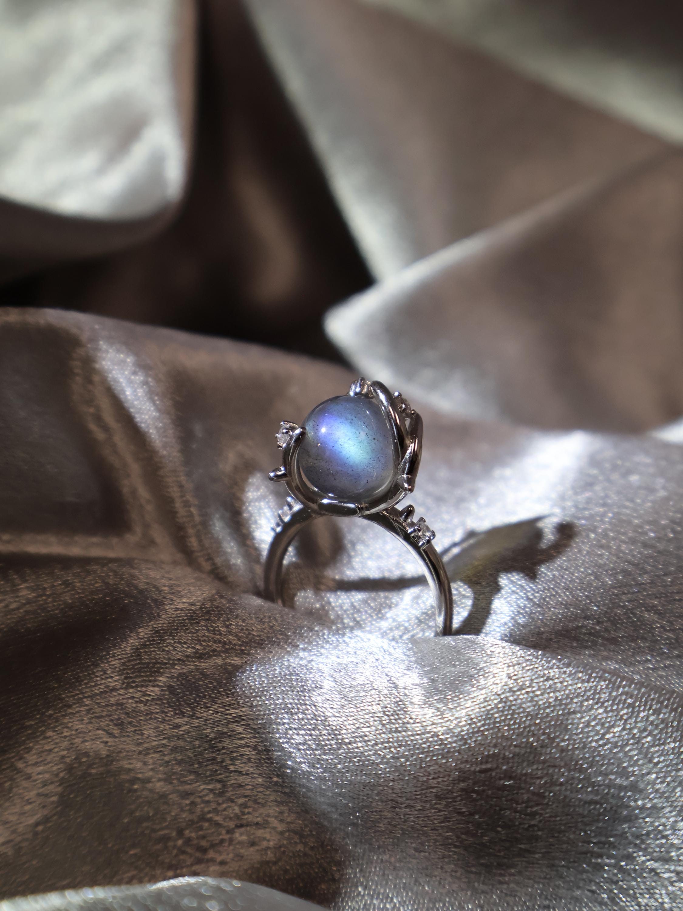 Discover calm, beauty, and balance with our newest design: a handcrafted crystal spinner ring made with natural moonstone or labradorite. Each ring is set on a sleek sterling silver band adorned with sparkling zircon details — a design that is both minimalist and elegant, perfect for daily wear.